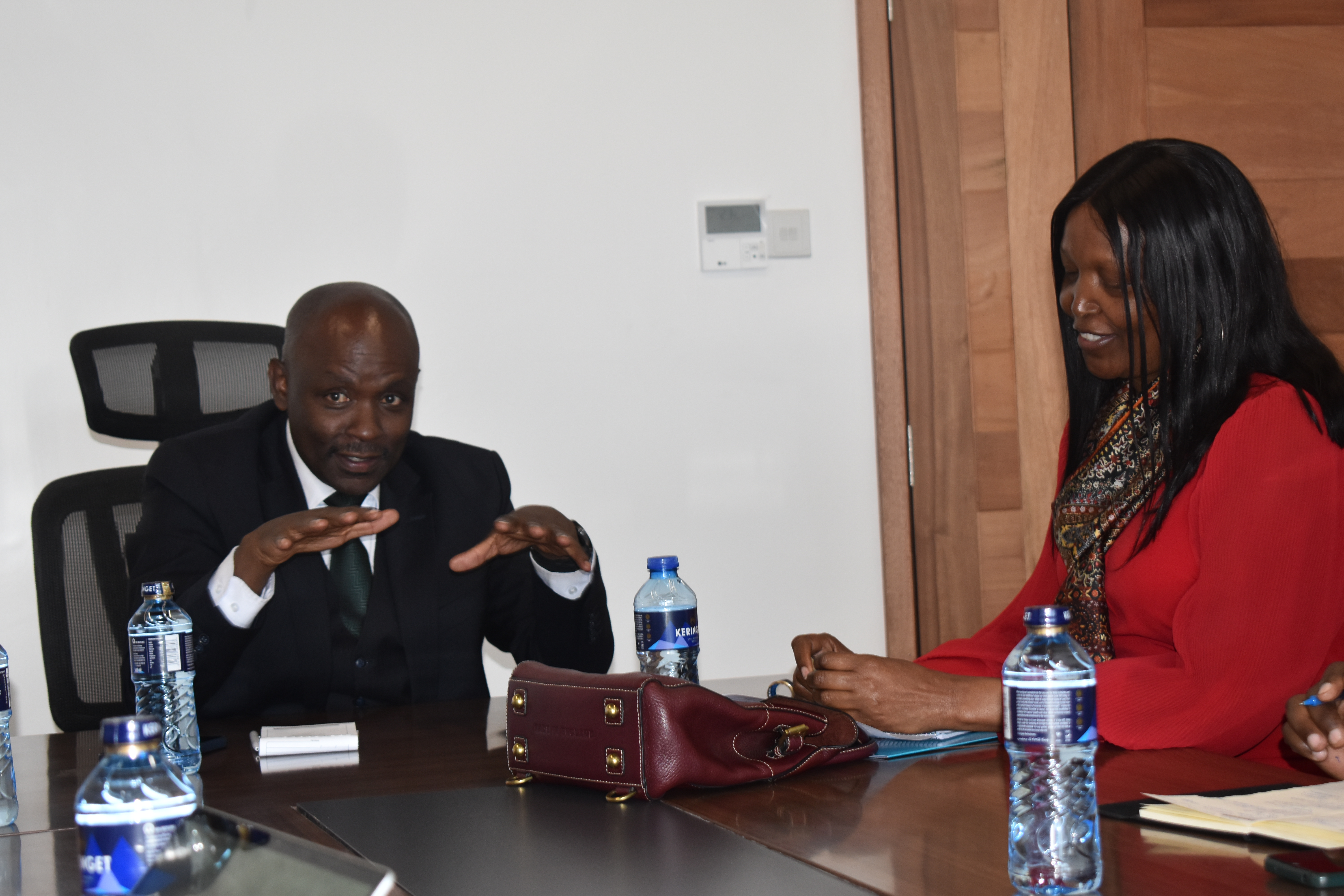On Friday, 10 April 2026, KeNIA’s Chief Executive Officer, Dr Tony Omwansa, hosted a crucial strategic meeting with the University’s Research, Innovation, and Enterprise (RIE) Division led by the Acting Deputy Vice-Chancellor Prof. Leonidah Kerubo. The meeting sought to align the University’s goals for innovation development with the national innovation agenda for enhanced partnership and collaboration. The DVC was accompanied by the Director of the Intellectual Property Management Office, Prof. Maina Wagacha, and some of the Division staff.